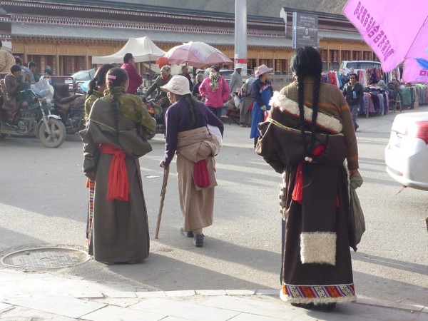 grund ist nicht nur das strassenschild und der schnee, wir sind auch einfach voellig durch und geschafft von hoehe, kaelte und paessen. deshalb verschenken wir die hart verdienten hoehenmeter und steigen mal wieder in den bus, richtung tiefland und waerme... ein zwischenstop in songpan, einer "historischen altstadt mit fast kompletter stadtmauer und stadttoren". busladungen von (chinesischen) touristen, unzaehlige hotels und hostels. nur: in der ganzen stadt gibts kein einziges historisches gebaeude mehr. alle kuerzlich abgerissen und durch nachbildungen ersetzt. es reihen sich handyshops an schicke boutiquen, dazwischen original tibetische handwerkskunst und yak-fleisch-spezialitaeten. manchmal denken wir, wir sind ein paar jahre zu spaet nach china gekommen...